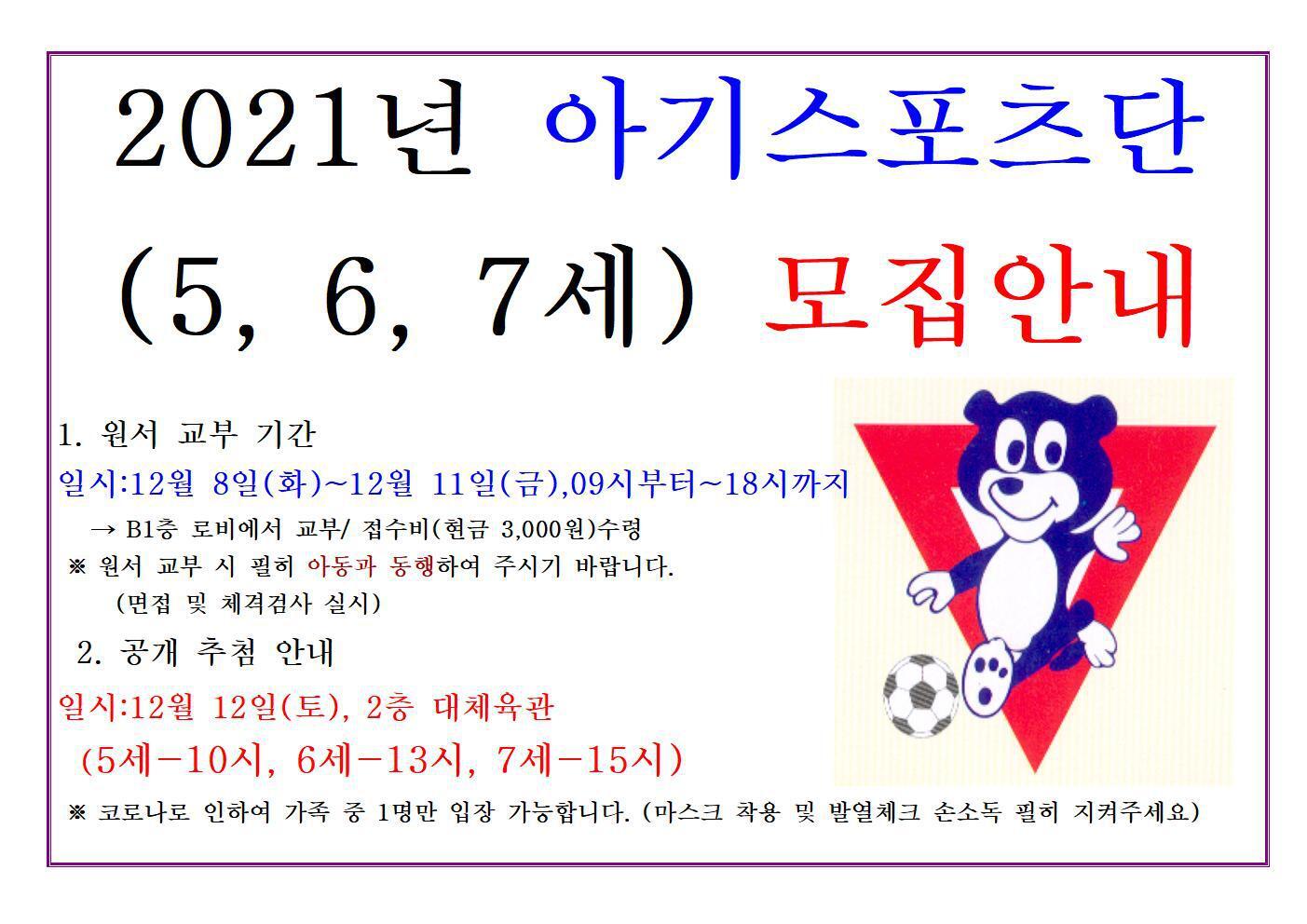 2021년도 원서교부 및 추첨안내! 작성자 관리자 작성일 2020-12-07 06:33 조회 4881 좋아요 1 싫어요 7 인쇄 « 2단계 샤워장 폐쇄 안내! 아기스포츠단 모집안내 » 목록보기 답글쓰기 Powered by KBoard